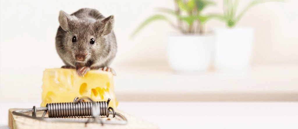 - المصائد الميكانيكية (Snap Traps): هي الأكثر شيوعاً وتسبب القتل الفوري. يجب وضعها عمودياً على الجدران في المسارات المكتشفة؛ لأن الفئران تفضل الجري بمحاذاة الجدران. استخدم طعوم جذابة مثل زبدة الفول السوداني أو الشوكولاتة.