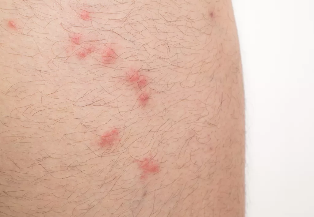 - لدغات على البشر: ظهور نقاط حمراء صغيرة ومثيرة للحكة، غالبًا ما تتركز حول الكاحلين والساقين.